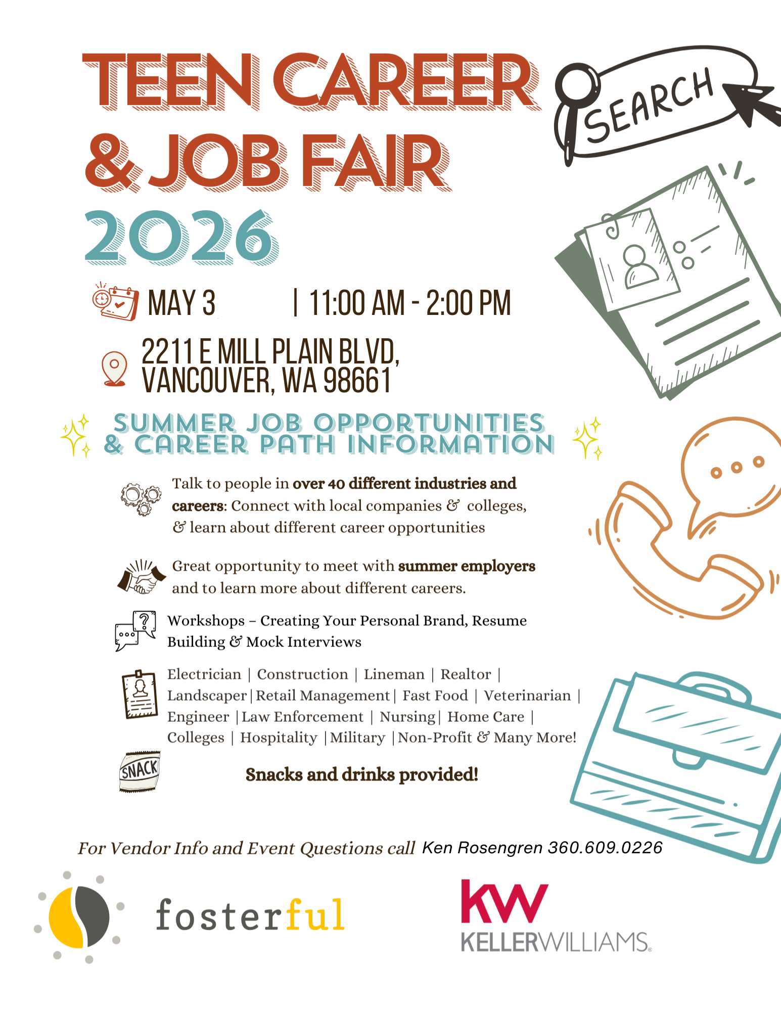 We’re excited to be partnering with Keller Williams for this event, to bring a great opportunity for teens to explore possible career paths, learn about potential summer job opportunities, and meet professionals who can share what it’s like to work in their industry and how to get started after graduation.